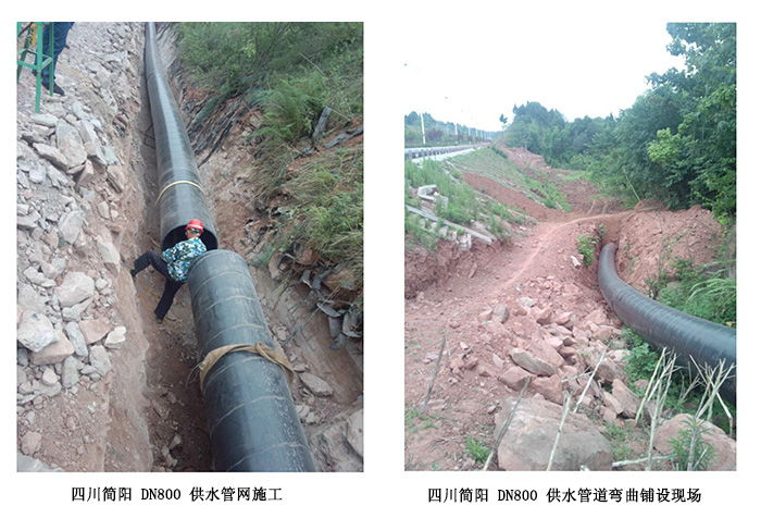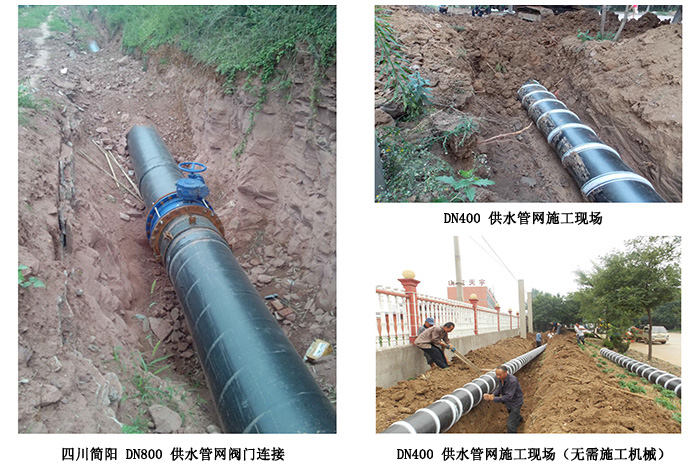 在工程施工方面,大口径膜片管也占很大优势。钢丝缠绕超高膜片管的比重约为1.2,而由于其壁厚很薄,直径可以小一号,其重量比铸铁管和PCCP管小5—10倍,搬运和安装非常轻便。超高膜片复合管的柔韧性很好,可以先在地面上连接好之后再下到管沟里,边挖沟边下管,边填埋。不用修路,不用大型机械,不用地基处理。铸铁管和PCCP管必须挖很宽的沟,管道下到沟里对正连接,受到很大局限,工程费用大幅上涨。在需要穿越江河的情况,超高分子量聚乙烯膜片管可用沉入法在江河底敷设,也可用拖拉法从江底隧道或管道中拖曳而过,这都是铸铁管和PCCP管做不到的。